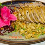 Vietnamesischer Reispapiersalat Kombination aus knackig-frittierte Reispapier, frische Lachzwiebel, Eier und einem süß-sauren Dressing.